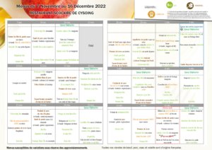 Menus Novembre Décembre 2022